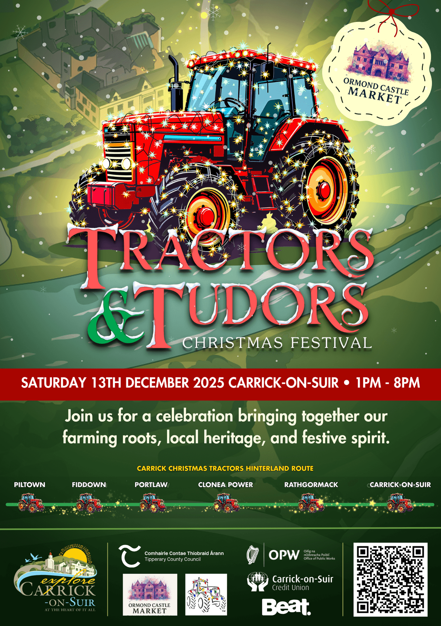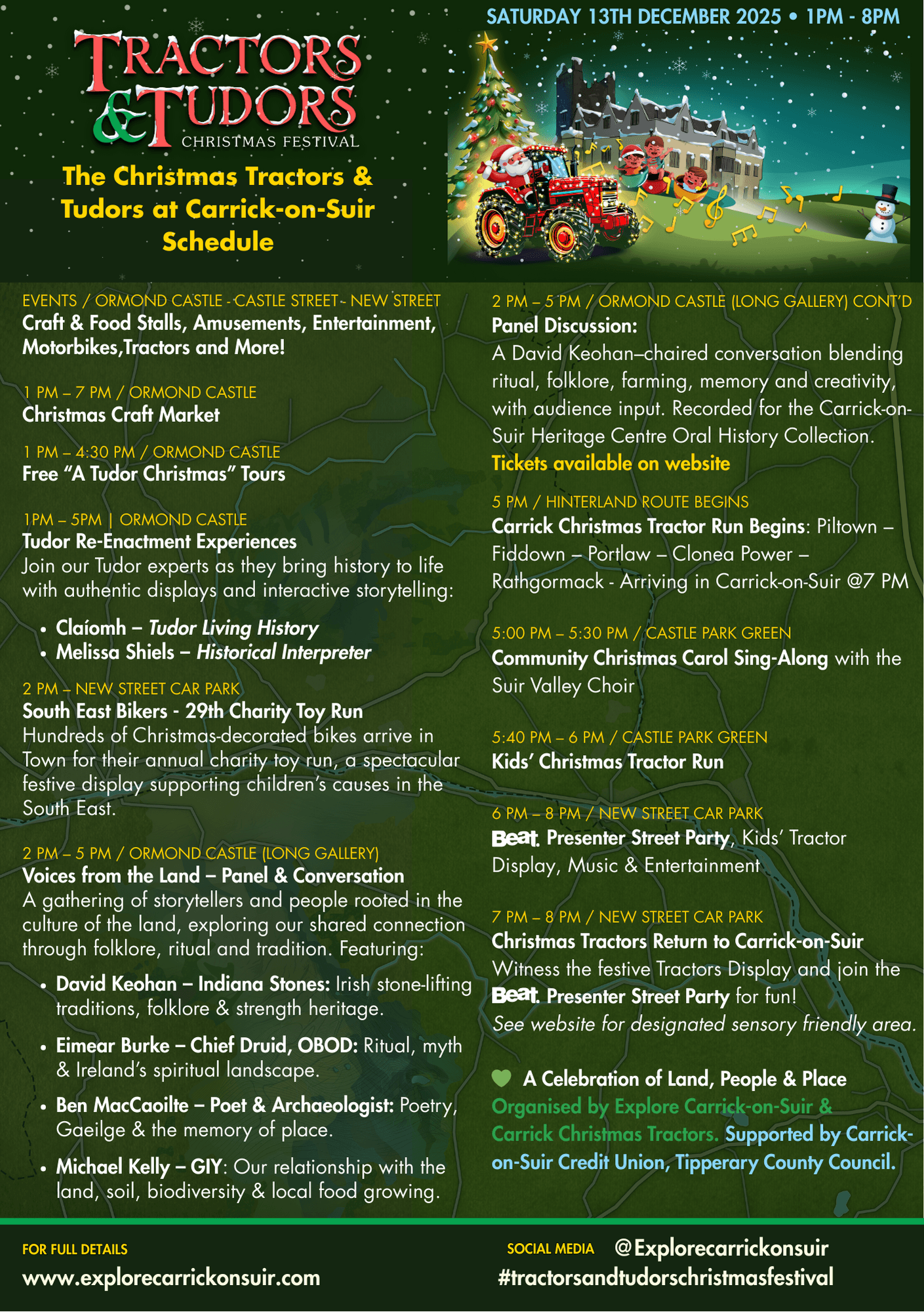 The Tractors & Tudors Festival is proudly organised by Explore Carrick-on-Suir and Carrick Christmas Tractors, with support from Carrick-on-Suir Credit Union and Tipperary County Council.